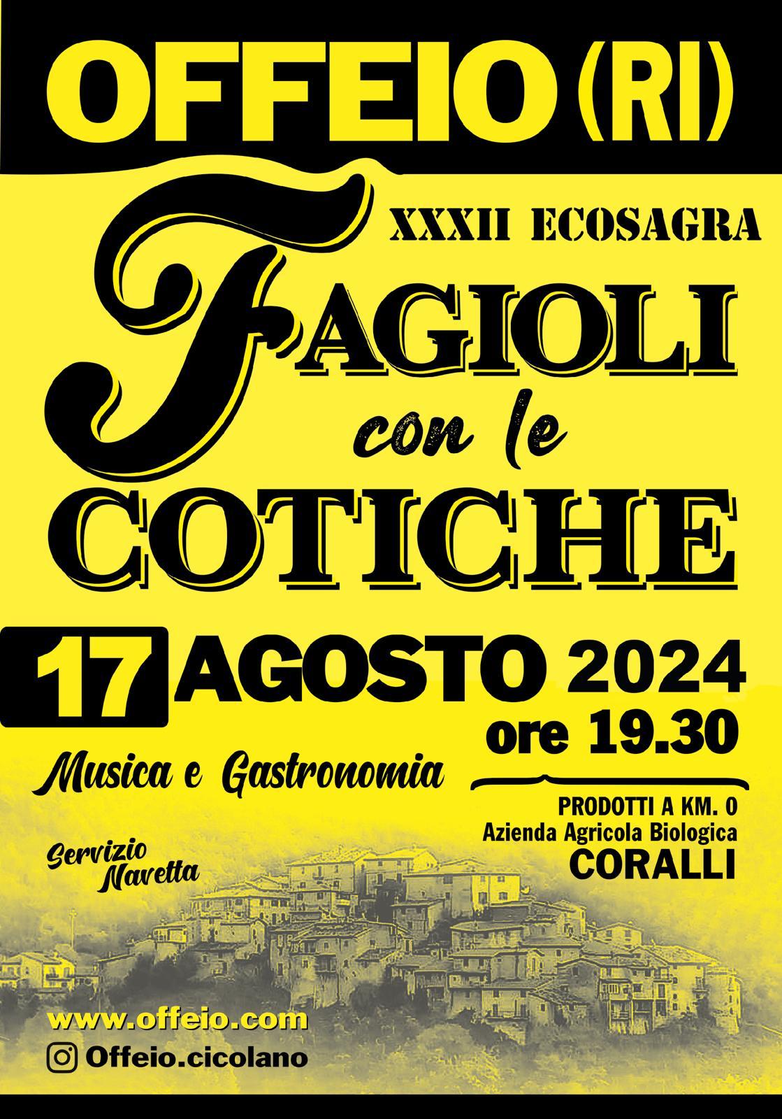 17 agosto: 30°edizione “EcoSagra dei Fagioli con le Cotiche”🥣 🍻 .