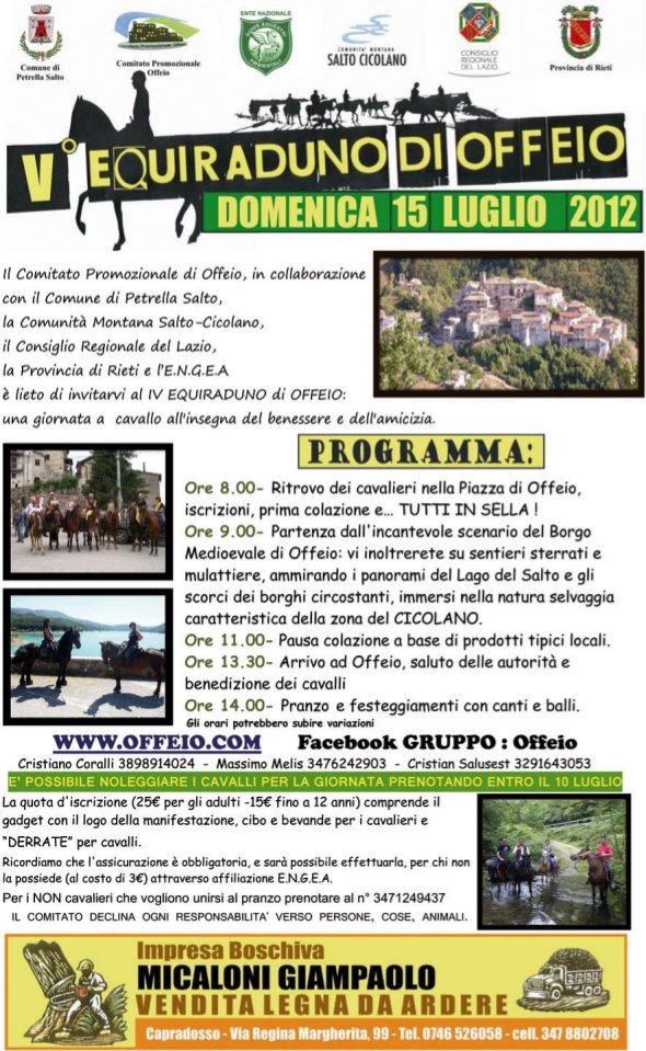 ore 8: ritrovo dei cavalieri in Piazza di Offeio – iscrizioni, colazione, e tutti in sella!