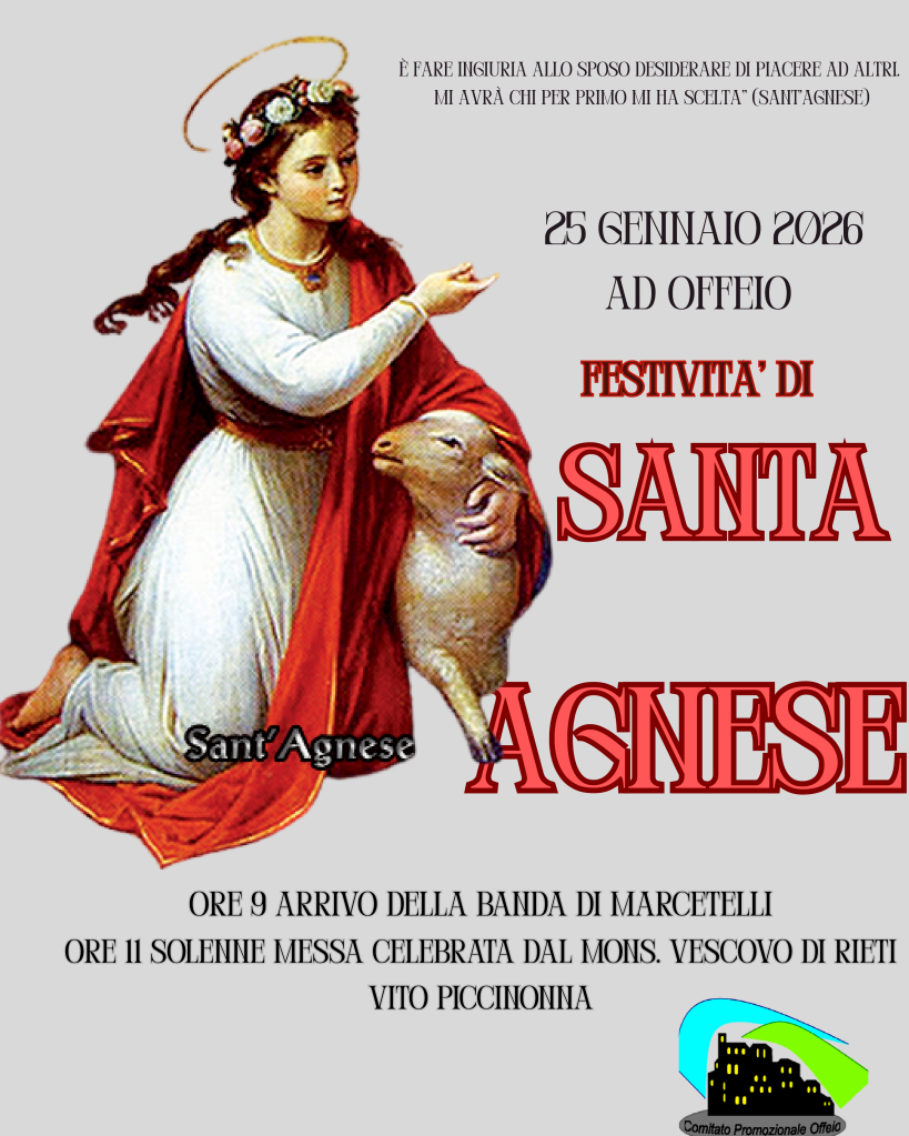 Festeggiamenti in onore di Sant’Agnese 2026 Condividi: Condividi su Facebook (Si apre in una nuova finestra) Facebook Condividi su X (Si apre in una nuova finestra) X Mi piace Caricamento... Correlati
