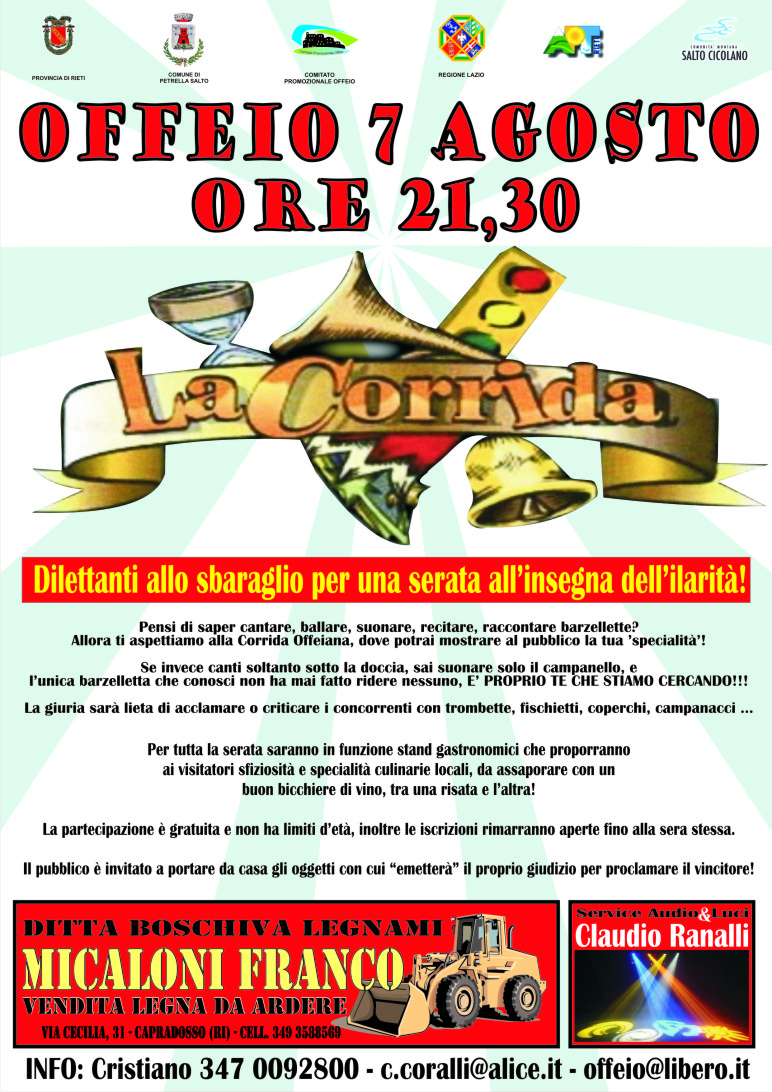 Pensi di saper cantare, ballare, suonare, recitare, raccontare barzellette? Allora ti aspettiamo alla Corrida Offeiana, dove potrai mostrare al pubblico la tua ’specialità’!