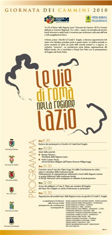 La Regione Lazio sta organizzando per il giorno 24 Ottobre la “Giornata dei Cammini 2010 è l’evento dedicato ai Cammini Regionali”