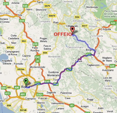 Offeio può essere raggiunto da Rieti (30 minuti) seguendo la Statale SS 578 (SR 579) e poi la Strada Provinciale SP 67, seguendo le indicazioni per il Lago e la Diga del Salto; da Roma (meno di 2 ore) prendendo la A24 fino all’uscita Valle del Salto, la superstrada SR 579 fino all’uscita Concerviano , e poi percorrendo la Strada provinciale SP 67.