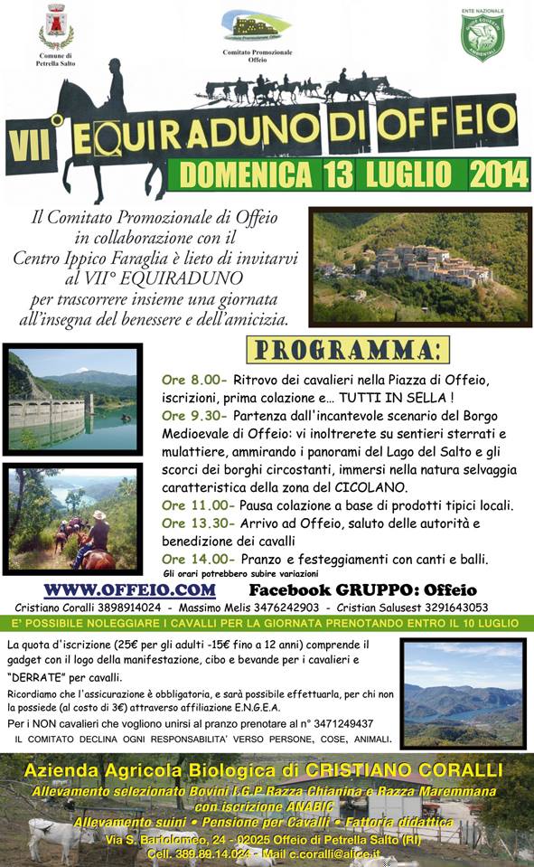 Il Comitato Promozionale di Offeio in collaborazione con il Centro Ippico Faraglia è lieto di invitarvi al VII Equiraduno di Offeio, per trascorrere insieme una giornata all’insegna del benessere e dell’amicizia. Continua a leggere