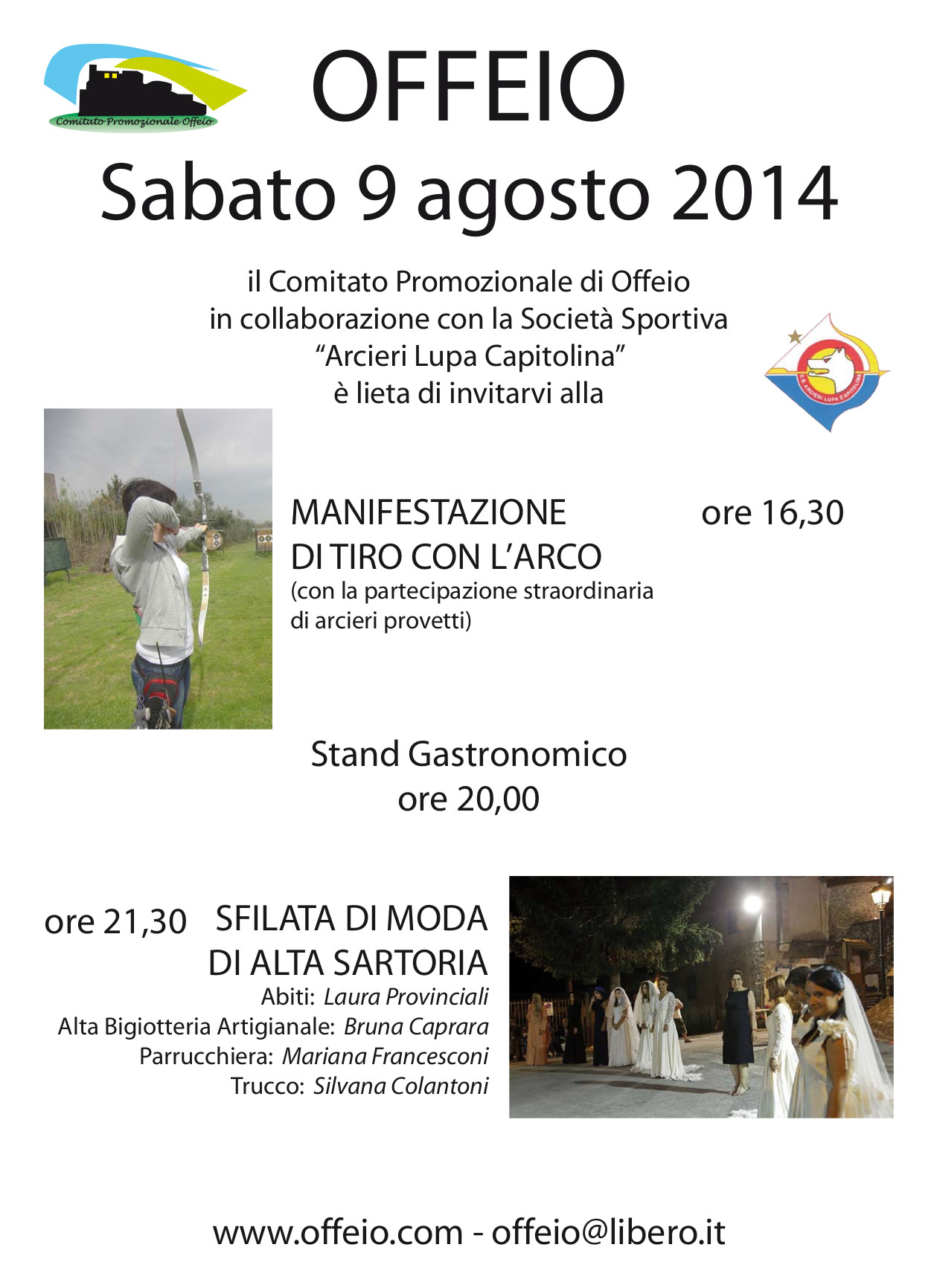 Sabato 9 agosto 2014 a partire dalle 16.30 si terrà la manifestazione di Tiro con l’Arco, con la presenza di arcieri provetti. La manifestazione è organizzata da Vincenzo Scaramuzza allenatore nazionale di tiro con l’arco e da Giuseppe Salusest. I campioni si esibiranno su un percorso all’interno del paese.