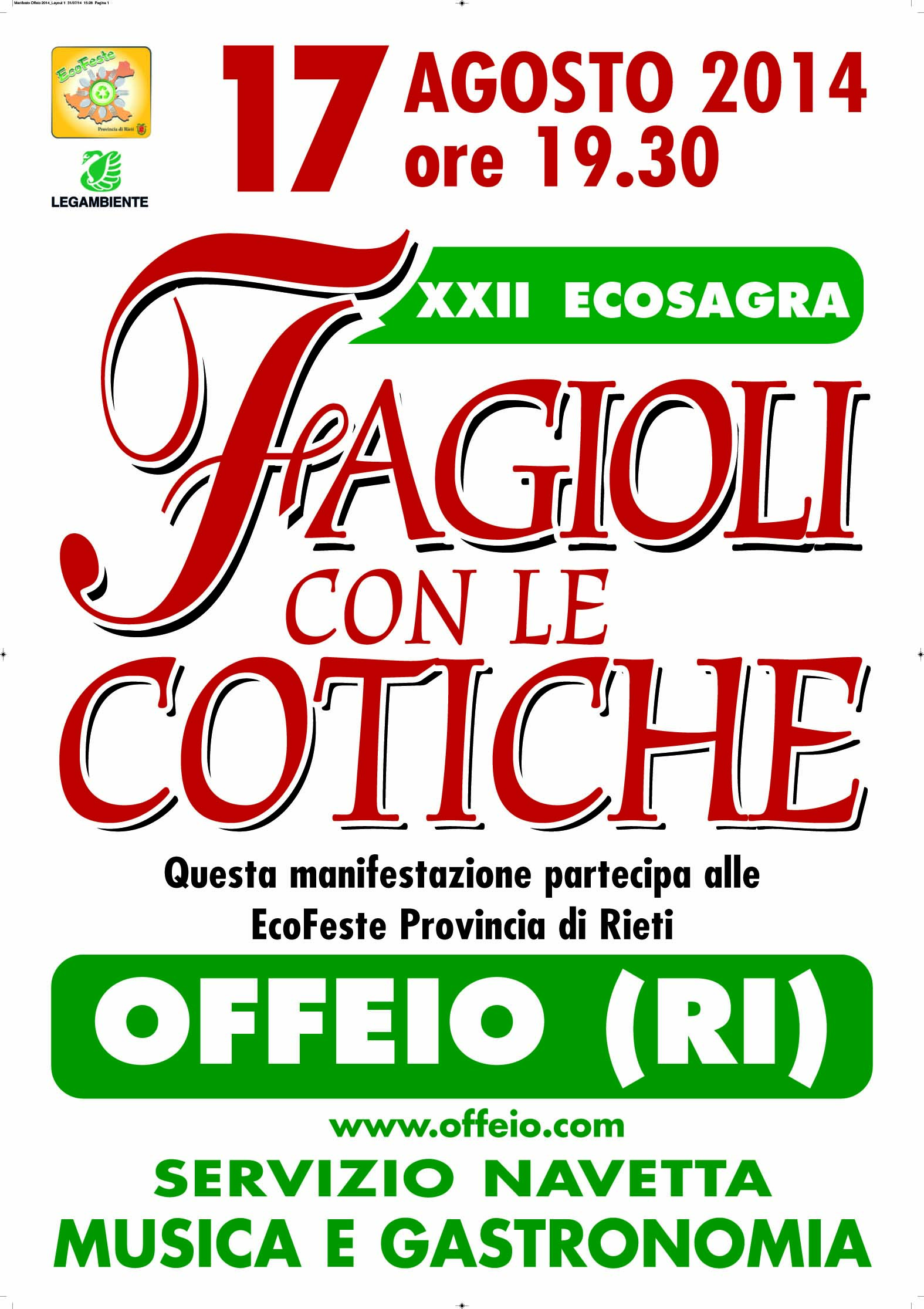 17 agosto: 30°edizione “EcoSagra dei Fagioli con le Cotiche”🥣 🍻 .